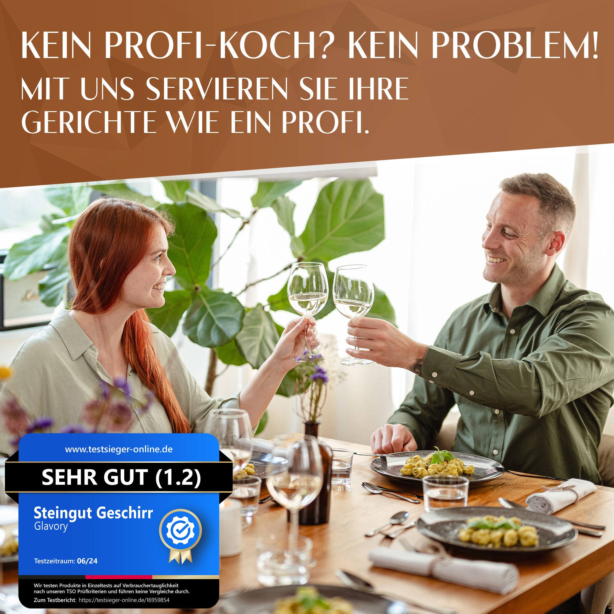 Gefertigt aus hochwertigem Steingut, gebrannt bei 1230 Grad, bietet dieses Geschirr eine außergewöhnliche Robustheit und Langlebigkeit. Es eignet sich sowohl für den alltäglichen Gebrauch als auch für besondere Anlässe.