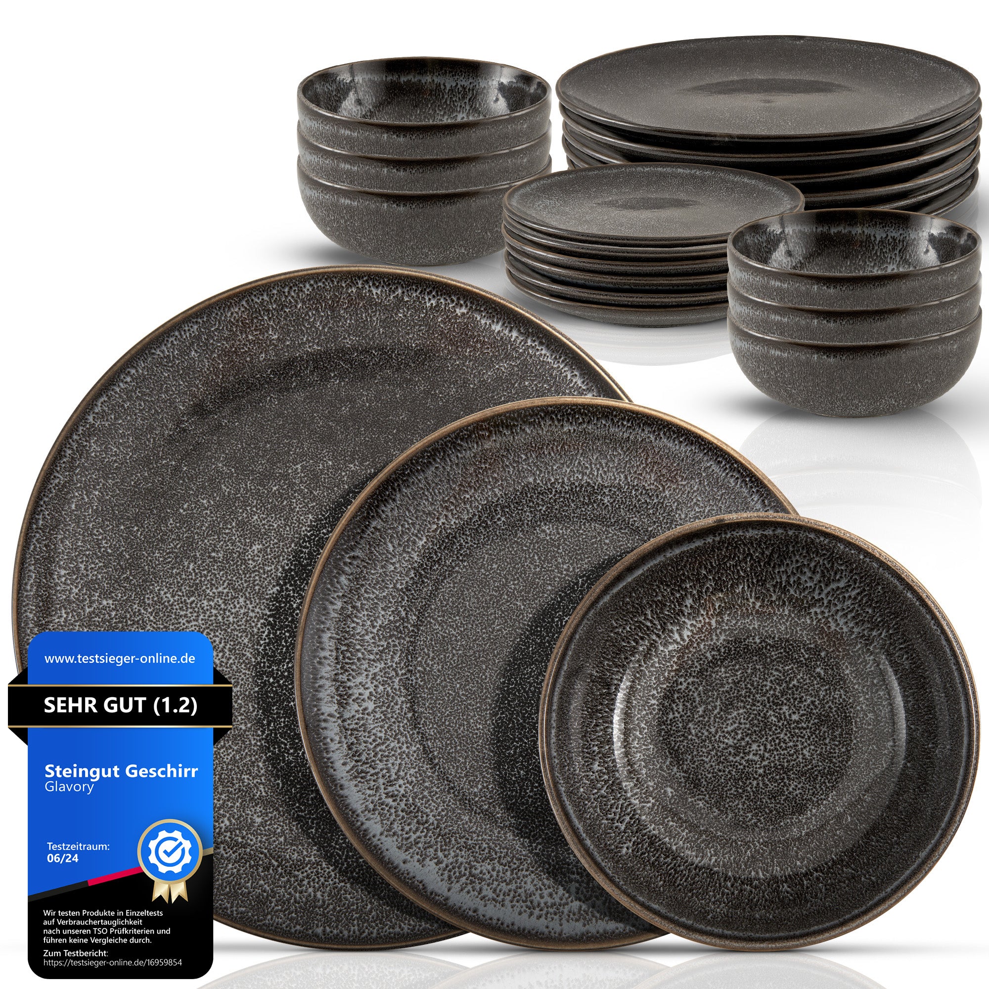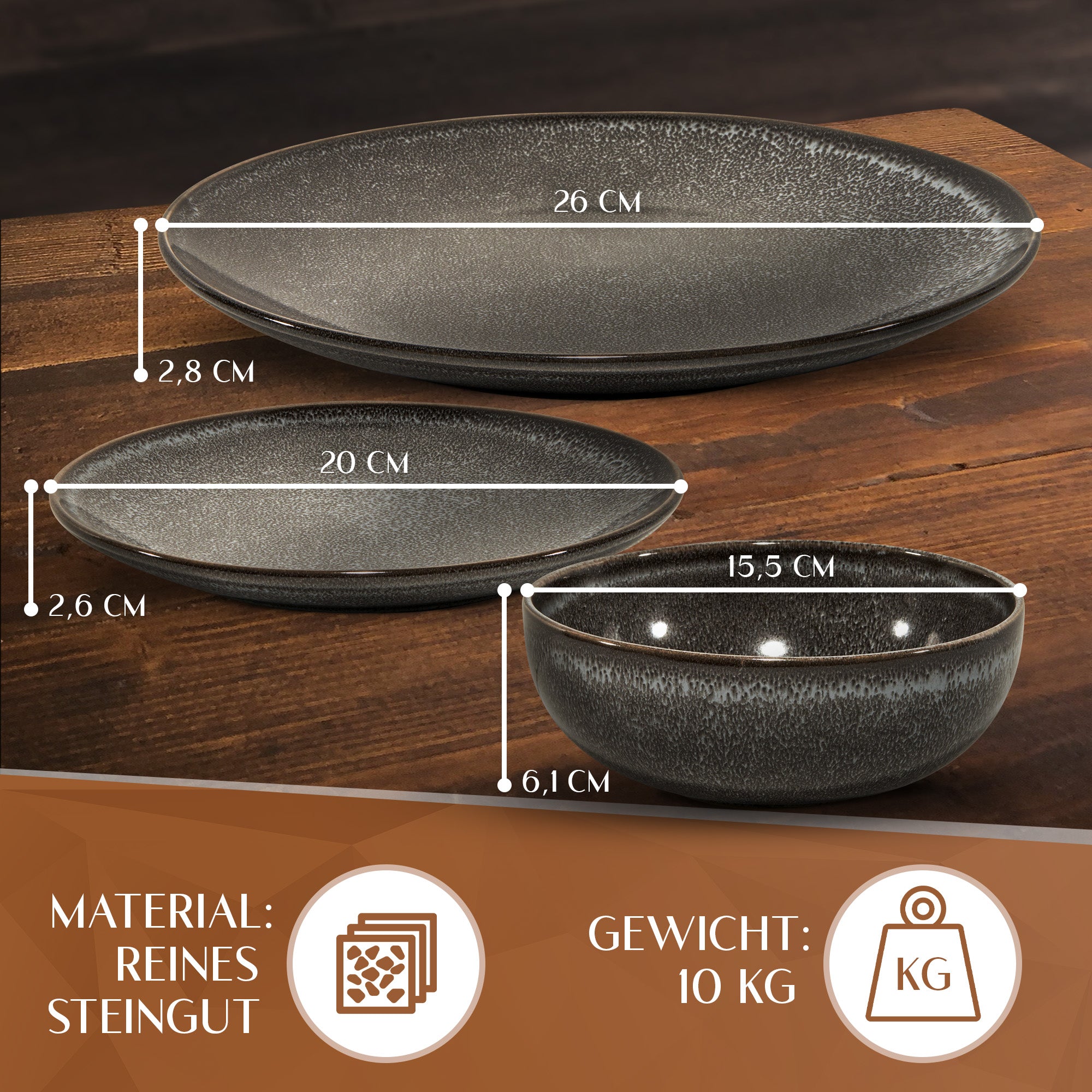 Eclipse - Steingut Geschirr Set - 18-teilig für 6 Personen in Schwarz