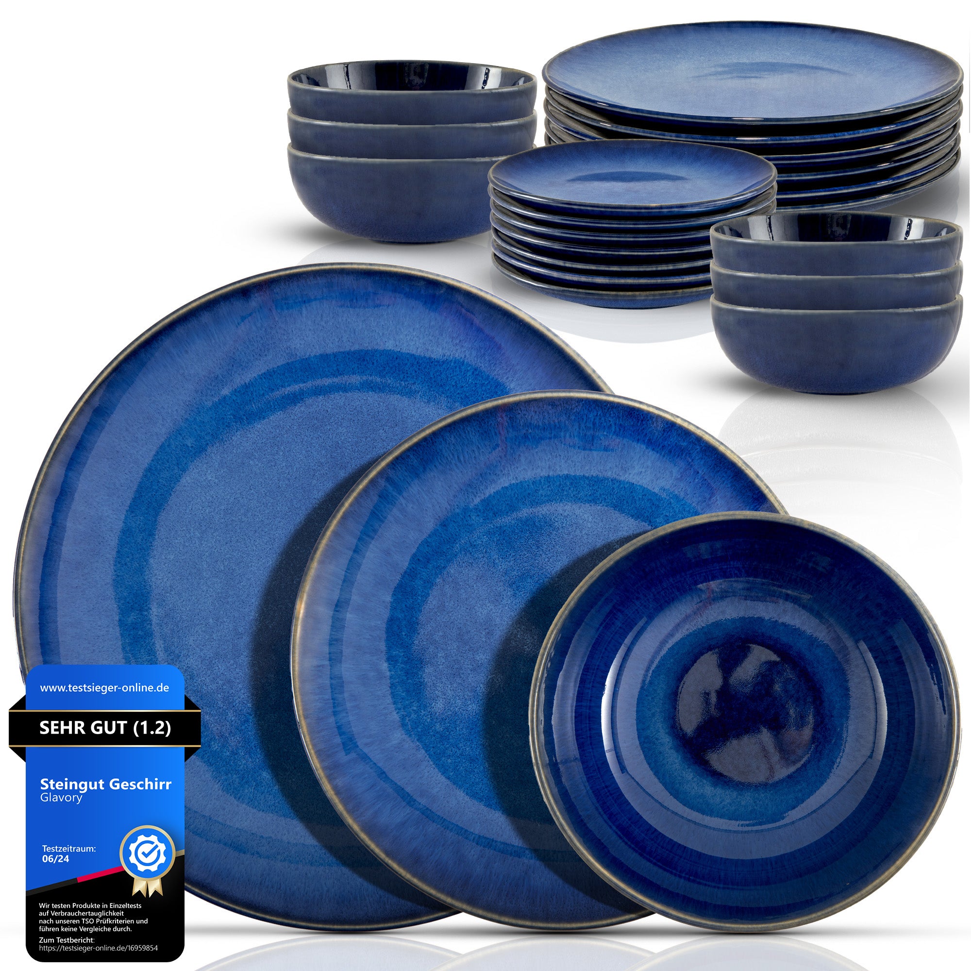 Eclipse - Steingut Geschirr Set - 18-teilig für 6 Personen in Blau